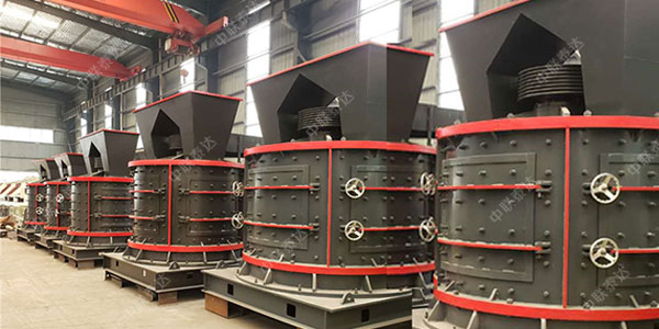 物料由機器上部垂直落入高速旋轉的葉輪內,在高速離心力的作用下,與另一部分以傘狀形式分流在葉輪四周的物料產生高速撞擊與粉碎,物料在互相撞擊后,又會在葉輪和機殼之間以物料形成渦流多次的互相撞擊、摩擦而粉碎,從下部直通排出,形成閉路多次循環,由篩分設備控制達到所要求的成品粒度。